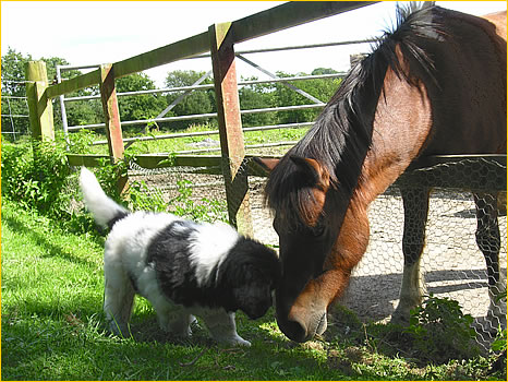 This is 'Boris' Lewin at 6 weeks old making friends with Hamilton our Fallabella horse.