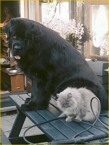 Owned by Roger and Lynn Penn. Byron and the cat are trying to decide who needs to be groomed first!
